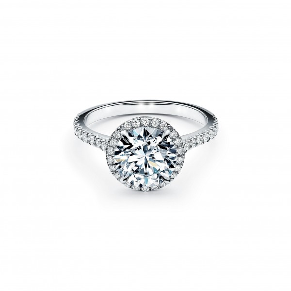 铂金镶嵌圆形明亮式切割钻石订婚钻戒