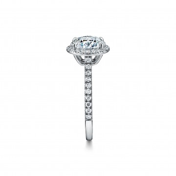 系列订婚钻戒璀璨夺目,如同光芒四射的骄阳一般。耀眼夺目的圆形明亮式切割主钻由珠链式边镶钻石璀璨簇拥,营造出迷人的光晕效果。