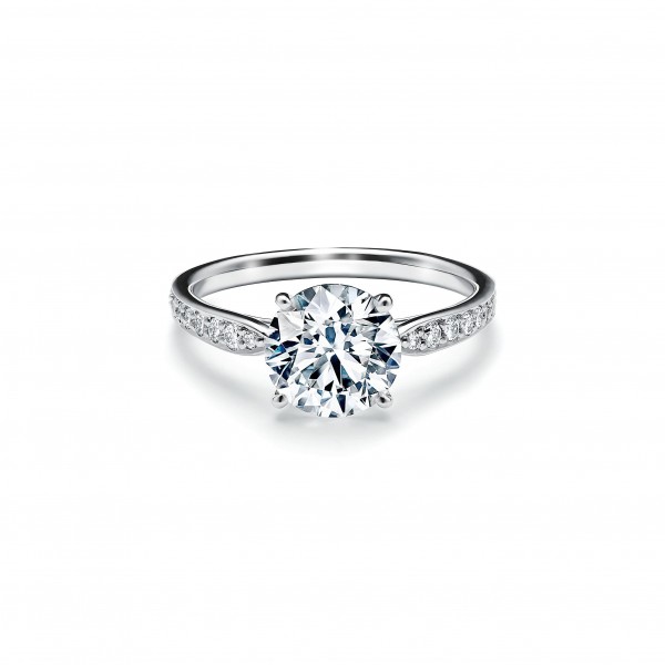 槽式镶嵌圆形明亮式切割钻石的指环与经典的 六爪镶嵌钻戒的闪烁光采璀璨辉映。精湛匠心成就经典杰作,成为世间伟大爱情故事的象征。